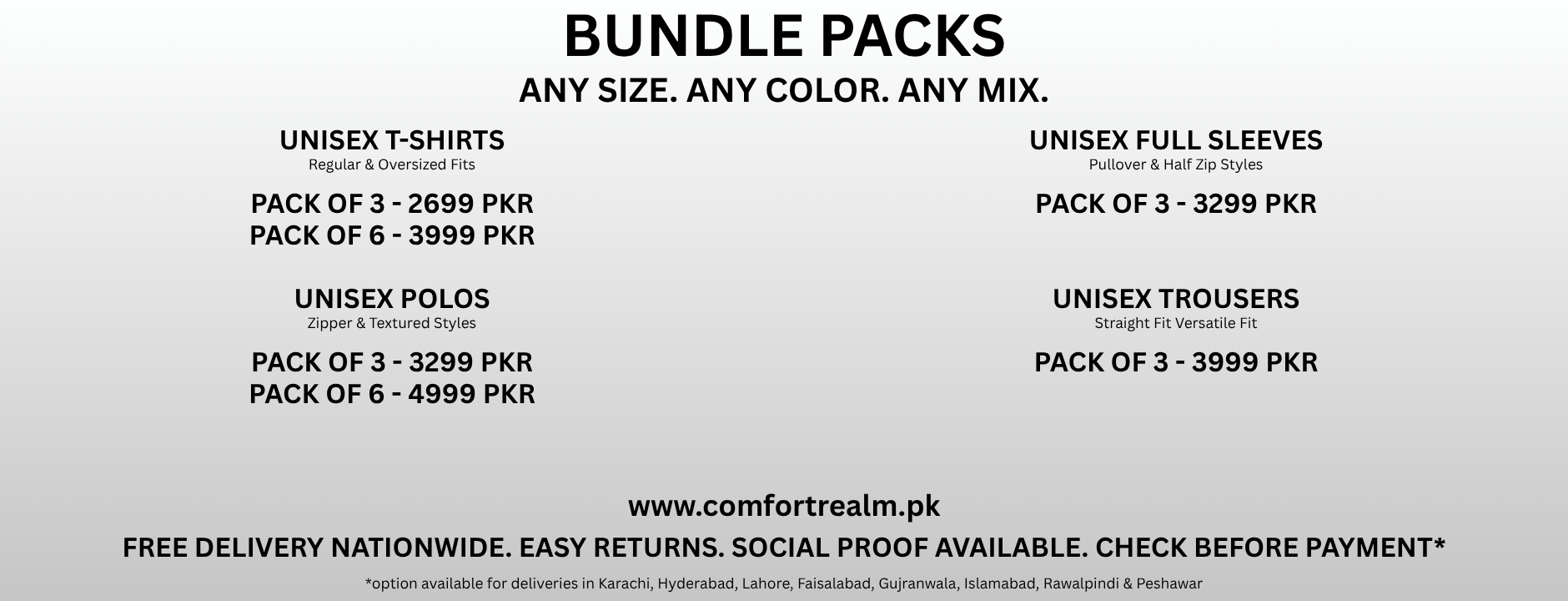 these cities (Karachi, Hyderabad, Lahore, Faisalabad, Gujranwala, Islamabad, Rawalpindi & Peshawar) to CHECK THEIR PARCEL BEFORE PAYMENT.